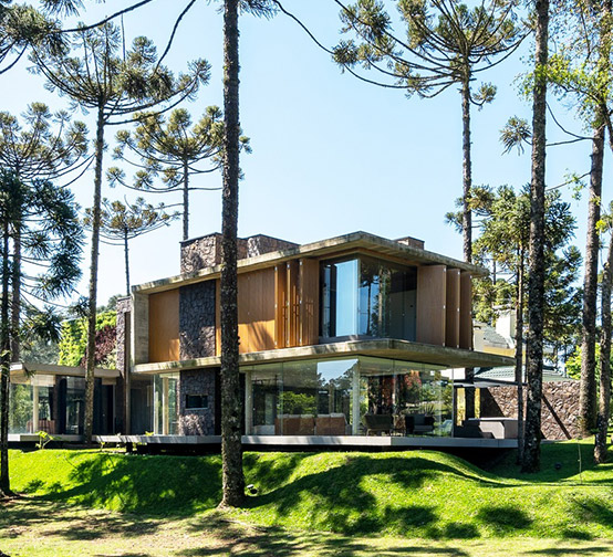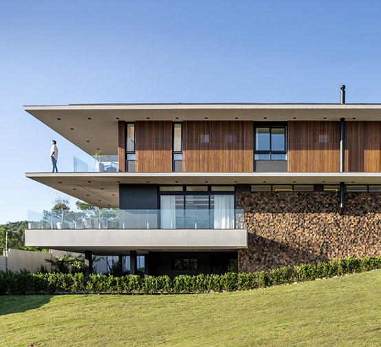 Projeto Estrutural e fundações de residência de alto padrão, com grandes vãos e grande balanço frontal. Projeto Arquitetônico: Arq. Pamela Ribeiro / Anexo 746
