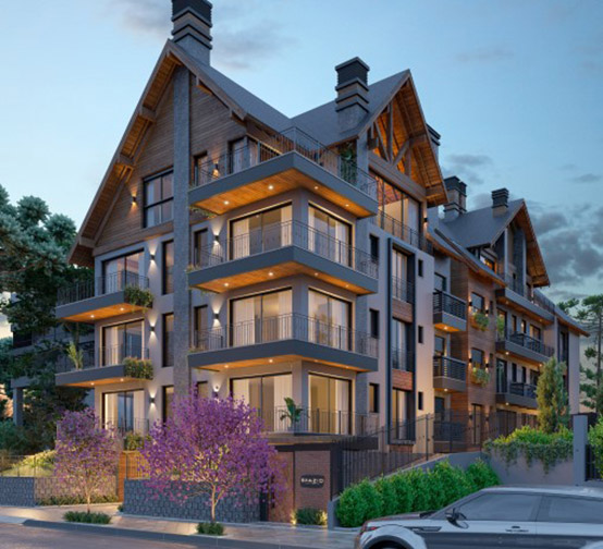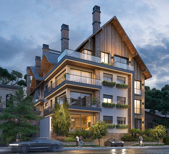 Projeto estrutural e de fundações para um dos maiores empreendimentos residenciais de Gramado/RS com 10 torres de apartamentos e cerca de 30.000 m². Incorporação: Hasam Incorporadora