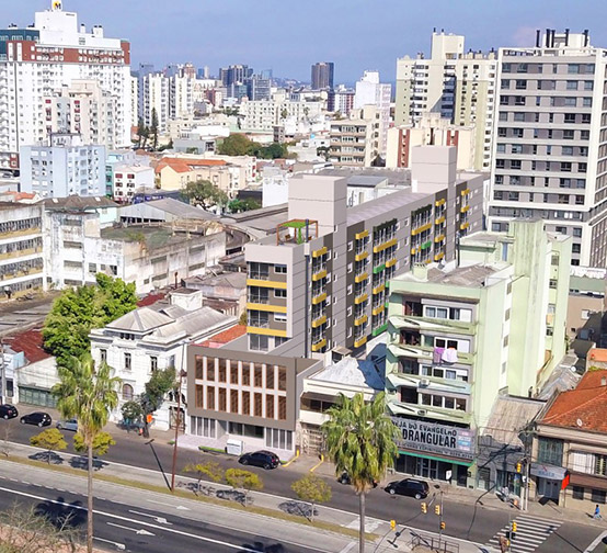 Projeto estrutural da parte em concreto armado de edifício comercial e residencial com 4.600 m² e 10 pavimentos. Construção e Incorporação: Irmãos Kunst Incorporadora